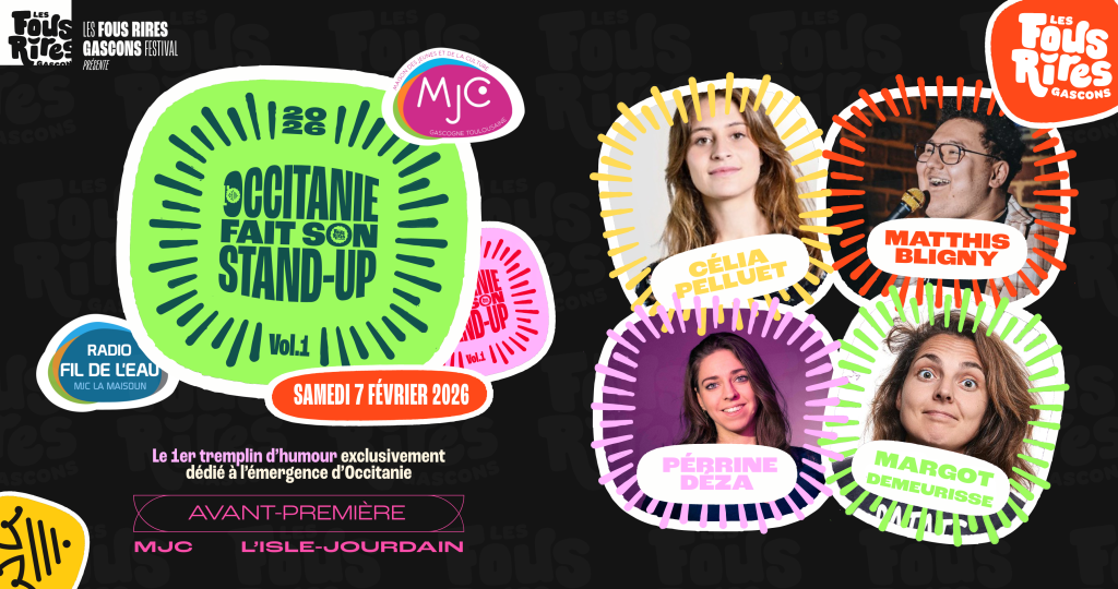 Cette soirée, placée sous le signe de l’humour et de la convivialité, propose plus d’une heure de stand-up avec quatre talents locaux gersois et toulousains, pour rire, partager et découvrir de nouveaux artistes !
