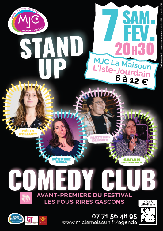 Programme détaillé et informationspratiques : https://mjclamaisoun.fr/event/comedy-club/